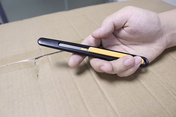 5. 完成修邊作業(yè)后,放松握緊安全刀具的掌心及讓刀片慢慢地自動回彈到刀柄內(nèi)。