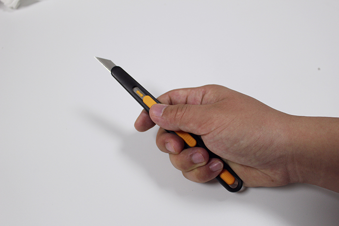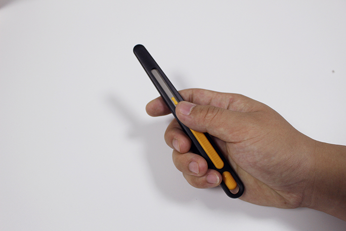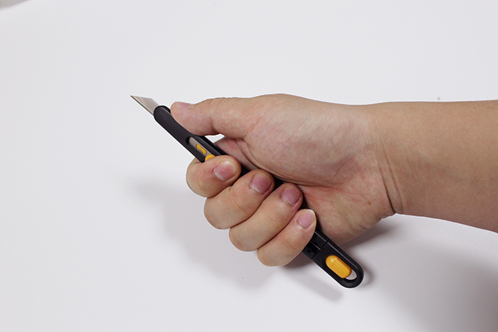 3. 用掌心緊握安全刀具,代替拇指把刀片維持在暴露于刀柄外的狀態(tài)。